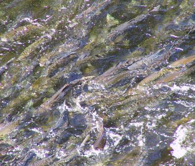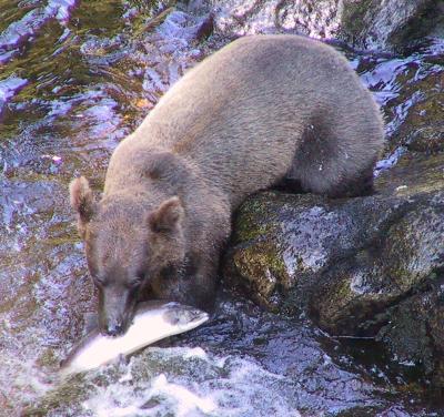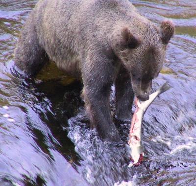 *** could not see the bottom for the fish in some places. The bears were obviously rather overfed and bored, since it was nearly impossible not to catch a fish in these waters.