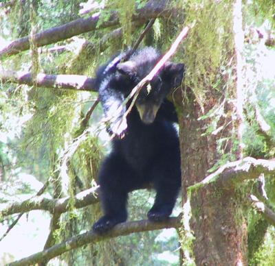 Most of the black bears caught fish with a minimum of fuss, doing all they could to minimize their expenditure of energy. One mama black bear would go down to the creek, snatch a salmon out of a pool where the fish regularly became trapped on their way up the falls, then return to a secluded place up a hill where her cub was hiding. This mini-drama repeated at about 20-minute intervals.