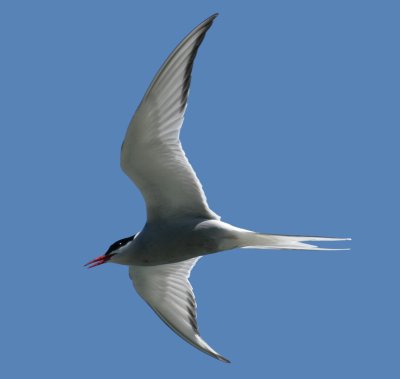 My pictures of Arctic Terns in flight were culled from a vast number of discarded exposures, another advantage of digital photography, where you can press the shutter button endlessly without feeling guilty about wasting film. I love watching Arctic Terns in flight, they are very graceful and they make flying seem like a game only they understand.