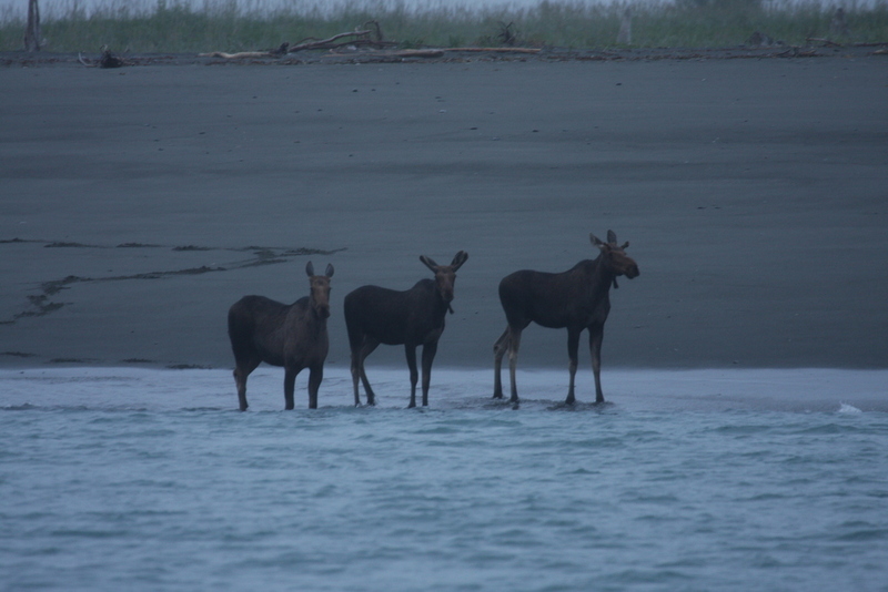 Icy Bay: as I motored past, these three moose somewhat mysteriously