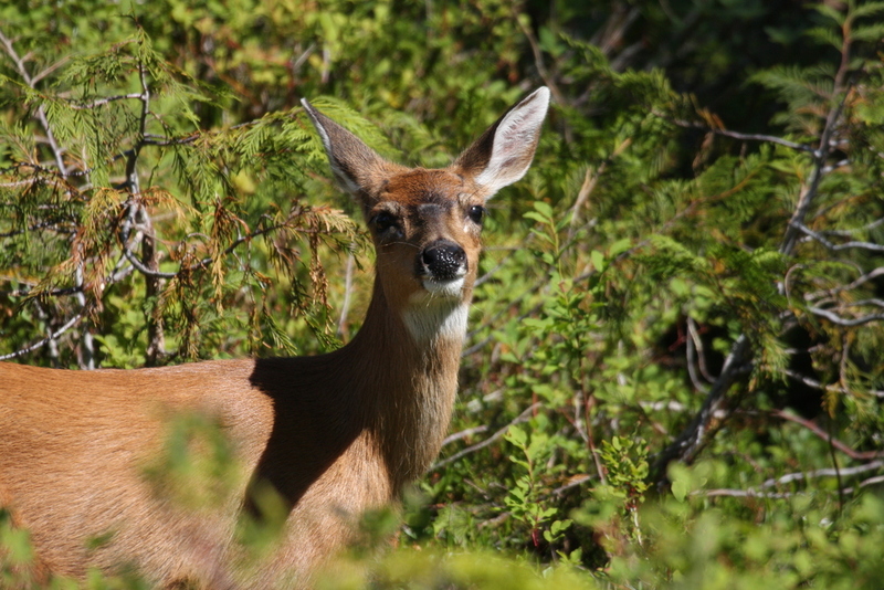 A fearless deer in the terrain above Petersburg
