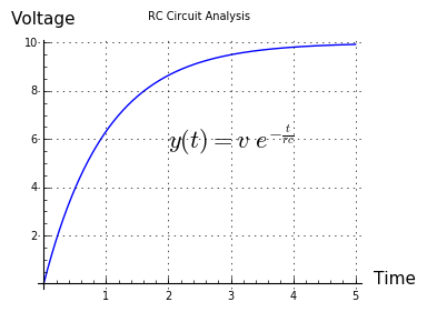 (2) $ \displaystyle y(t) = m e^{-(\frac{t}{r c})} $Where $e$ = the base of natural logarithms.