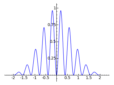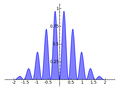plot(sin(x*8)^2 * e^-(x*x),x,-2,2,fill=True,fillcolor='blue')![]()